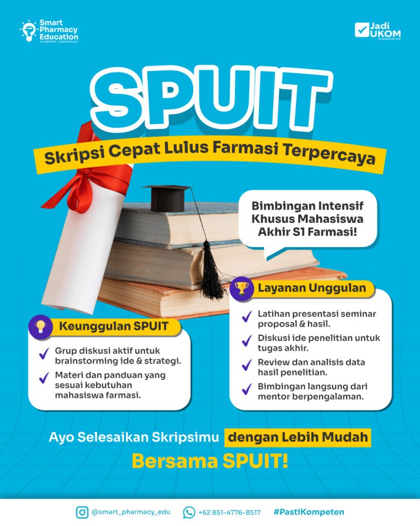 Smart Pharmacy Education (SPE) merupakan Program pendampingan buat kamu lebih memahami materi Kuliah Farmasi, Ujian, Seminar Proposal, Skripsi, Lomba sampai dengan Persiapan Masuk PSPPA dan Persiapan UKMPPAI! bikin kamu makin berprestasi!